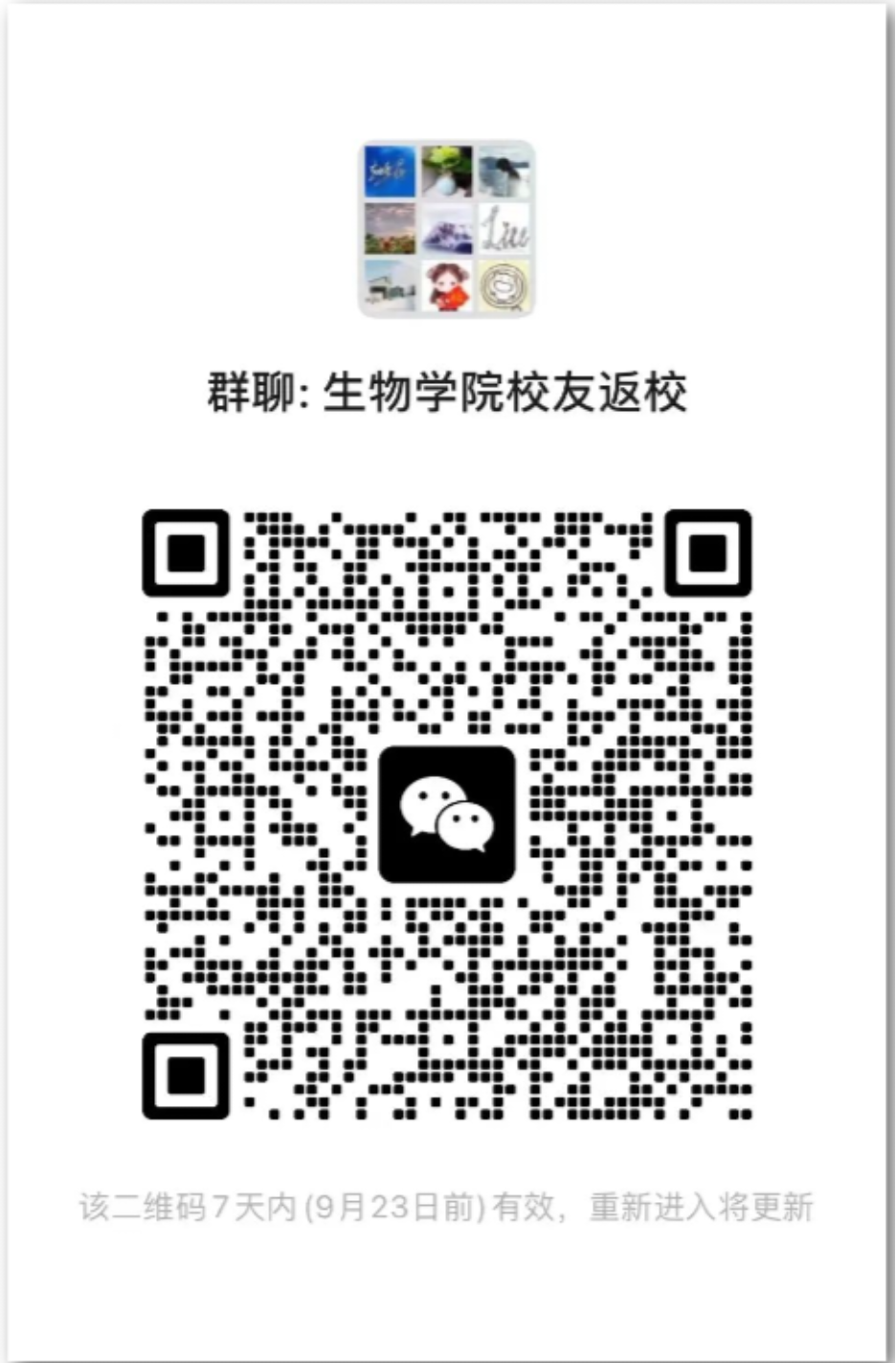 请返校校友在9月21日前扫描下方二维码加入微信群,以便交流沟通及发布通知。