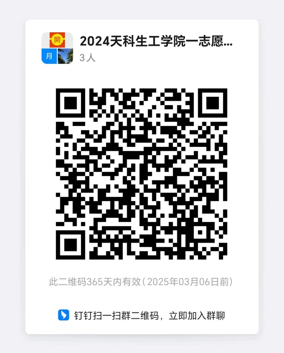 钉钉群加入办法:手机或电脑下载钉钉软件,注册账号并登录后,搜索群号70880010008,或钉钉扫描下面二维码申请进群,申请请备注:考生编号+姓名+总成绩。进群后请修改昵称为:专业名称+姓名