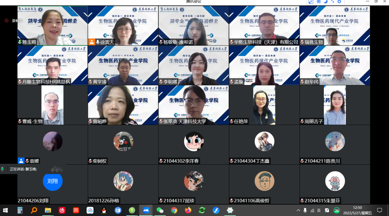 5月27日,生物医药现代产业学院面向2020级学生开展招生宣传并启动遴选工作,本次招生宣传得到了五家共建单位的大力支持,康希诺生物股份公司杨敬敬经理、天津瑞普生物技术股份有限公司徐宏超经理、华熙生物科技(天津)有限公司李明经理、天津药物研究院有限公司闫秀云经理和丹娜(天津)生物科技股份有限公司姚显枫经理参会并做企业介绍;全讯新2网官网党委书记黄学锋、党委副书记、院长罗学刚、党委副书记曾昭晔、副院长滕玉鸥、副院长张翠英、副院长梁侯明及本科教务科、学生办公室、产业学院教研室相关管理人员与教师参会,全讯新2网官网2020级和2021级学生参会,会议由滕玉鸥副院长主持。