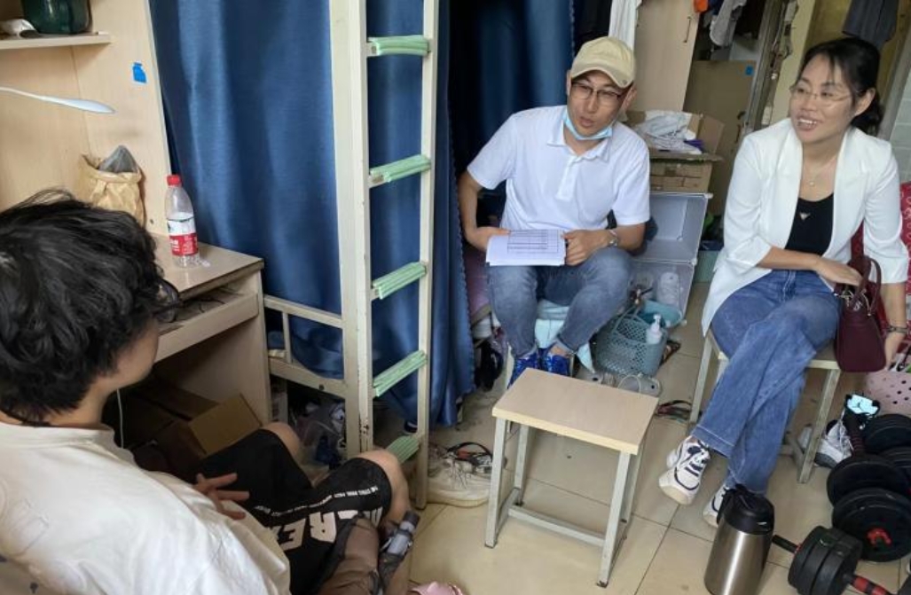 在疫情长期持续的情况下,为及时了解学生的思想动态、心理状况,确保学生工作有序、平稳开展和推进,5月28日晚和29日晚,全讯新2网官网党委书记黄学锋、副书记曾昭晔,全讯马克思主义学院副院长、全讯新2网官网辅导员滕翠华及各年级辅导员深入学生公寓,集中走访各年级学生宿舍。
