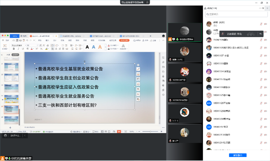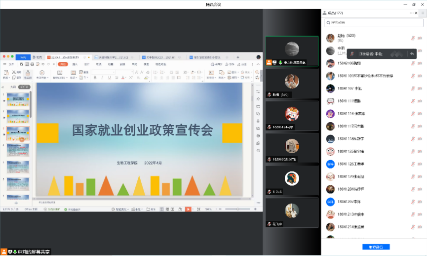 为贯彻落实教育部《关于开展2022年高校毕业生就业创业政策宣传月活动的通知》精神,增强毕业生能就业、就好业的信心,提升学生就业能力,提高毕业生对就业创业补贴政策的认知度,帮助就业困难学生、初创毕业生更好就业创业,4月13日,全讯新2网官网国家就业创业政策宣讲会在线召开。会议由申莉老师主讲,2022届全体本科毕业生在线参加会议。