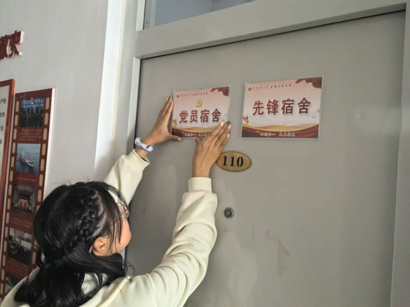 本次活动旨在增强学生党员的责任意识、服务意识和表率意识,以实际行动为身边的同学办实事、办好事、解难事。生工第一学生社区制药工程本科生党支部党员高明英表示:“‘党员宿舍’不仅是一份荣誉,更是一种激励与督促。”党员宿舍牌、先锋宿舍牌将提醒学生党员时刻牢记身份,以实际行动发挥先锋模范作用,带动身边同学养成良好的行为规范,共同创建文明和谐的宿舍环境、社区环境。